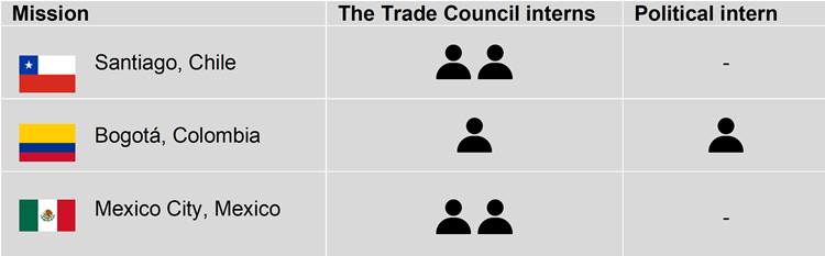 Three Danish embassies in Latin America (Santiago, Bogotá, Mexico City) are looking for interns to form an integral part of both the political and commercial teams. The internship is a unique opportunity to supplement your academic studies with practical key skills and thorough knowledge of Latin American business and political affairs.